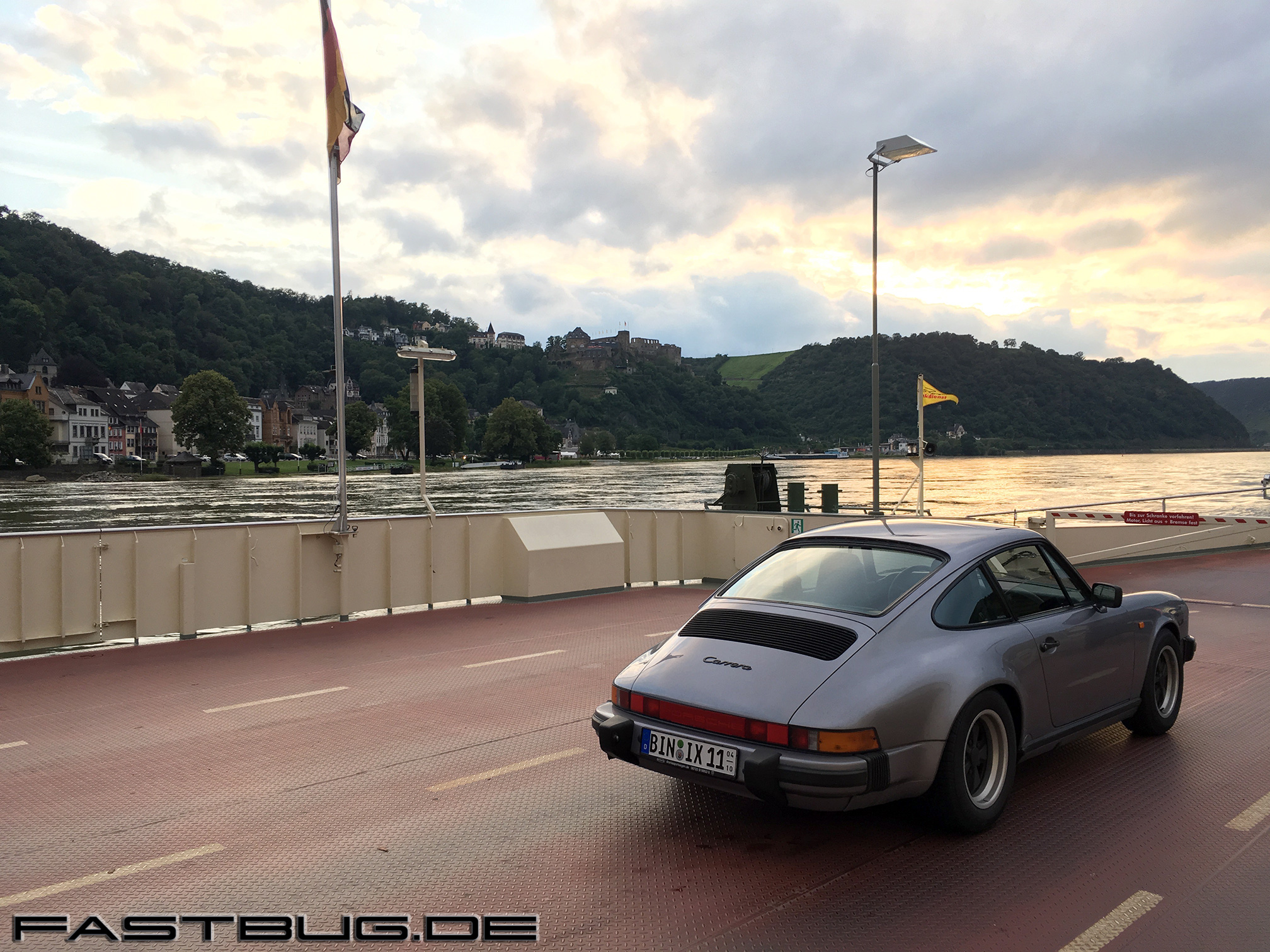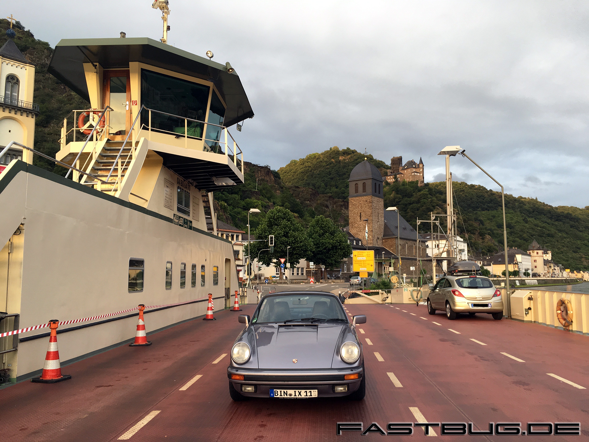Nachdem nach ca. 5 Minuten ein weiteres Fahrzeug auf die Fähre gekommen ist, setzen wir über nach St. Goar. Es ziehen nun auch dunkle Wolken vor die Sonne, Zeit sich zu trollen.