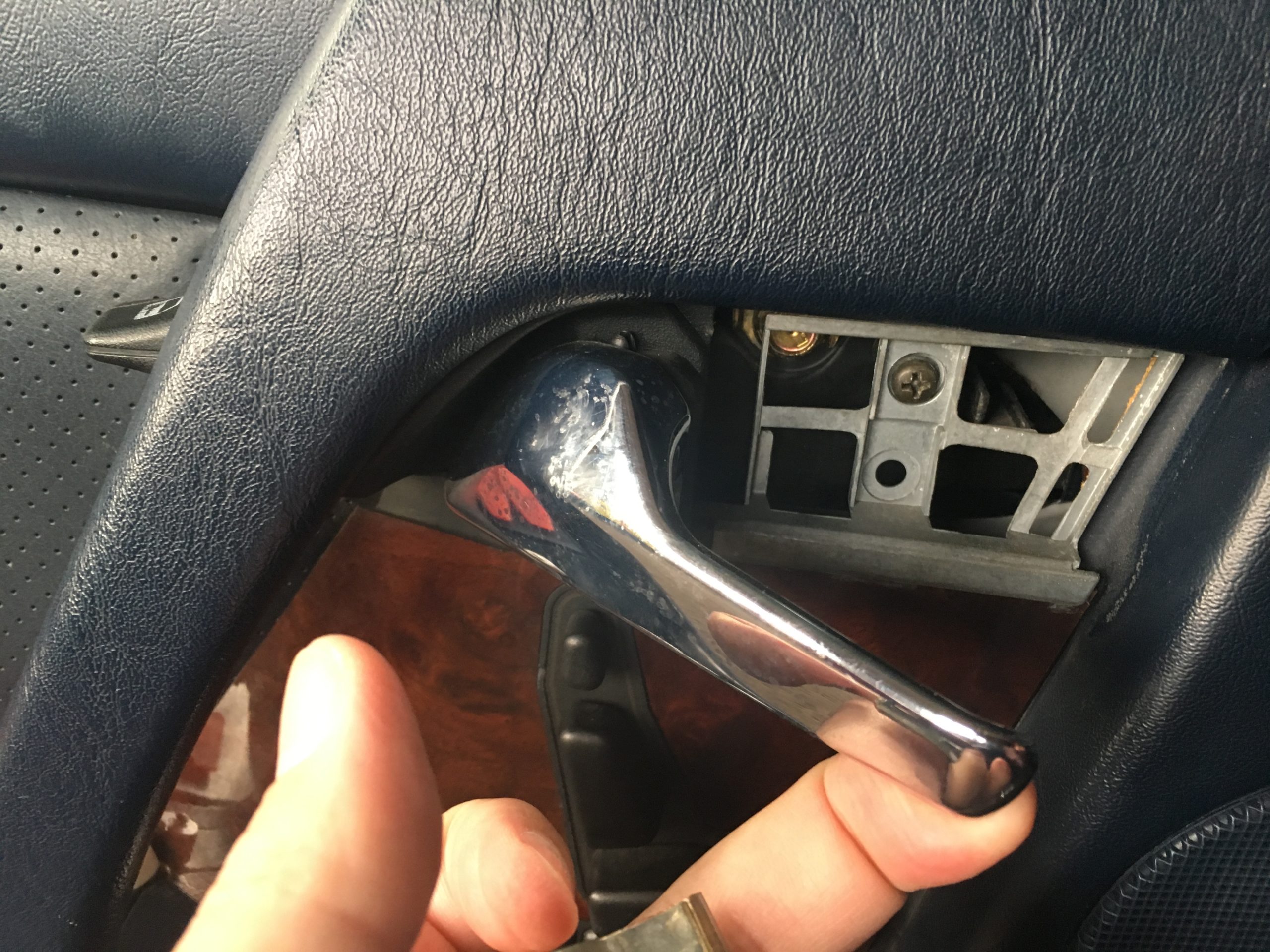 Am Sonntag wollte ich dann mit dem Interieur weiter kommen. Aus irgendeinem Grund und offensichtlicher geistiger Umnachtung hatte ich 4mm Klammern zum Anbringen der Halterungen auf der Rückseite der Mittelkonsole besorgt. Es müssen aber 6mm sein. Alles wieder weggeräumt. Anschliessend wollte ich den Fahrersitz tauschen. Mein neuer gebrauchter Sitz lag schon eine Weile in der Werkstatt und wartete. Der Ausbau ging schnell von der Hand. Zwei Schrauben vorne, Sitzkissen anheben und nach hinten ziehen. Zwei Schrauben hinten/unten an der Lehne und dann die Lehne nach unten wegziehen. Dummerweise scheint beim Einbau der Lehne etwas schief gegangen zu sein. Die Dorne der Lehne, die in die Unterkonstruktion geschoben werden, werden in Gummibuchsen eingeführt. Eine Seite war in Ordnung, die andere Hülse verknuddelt.