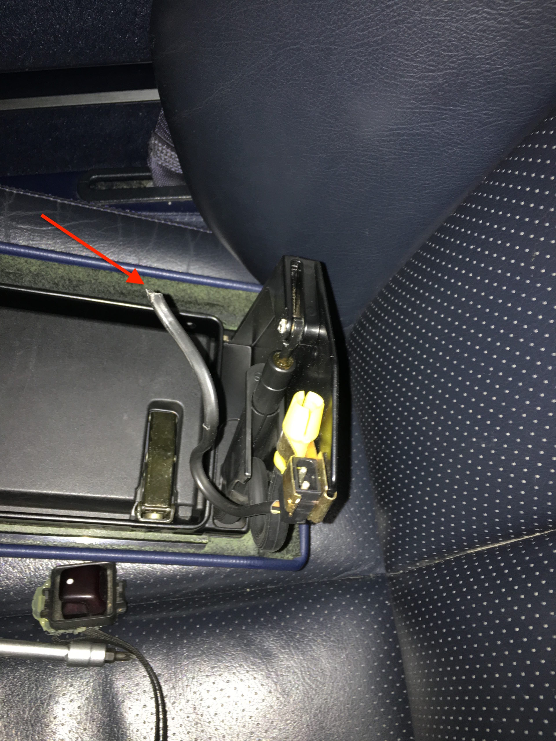 Bei der Armlehne ist leider wieder ein Schaden zu verzeichnen. Da hat doch einer einfach ein Kabel abgeschnitten.