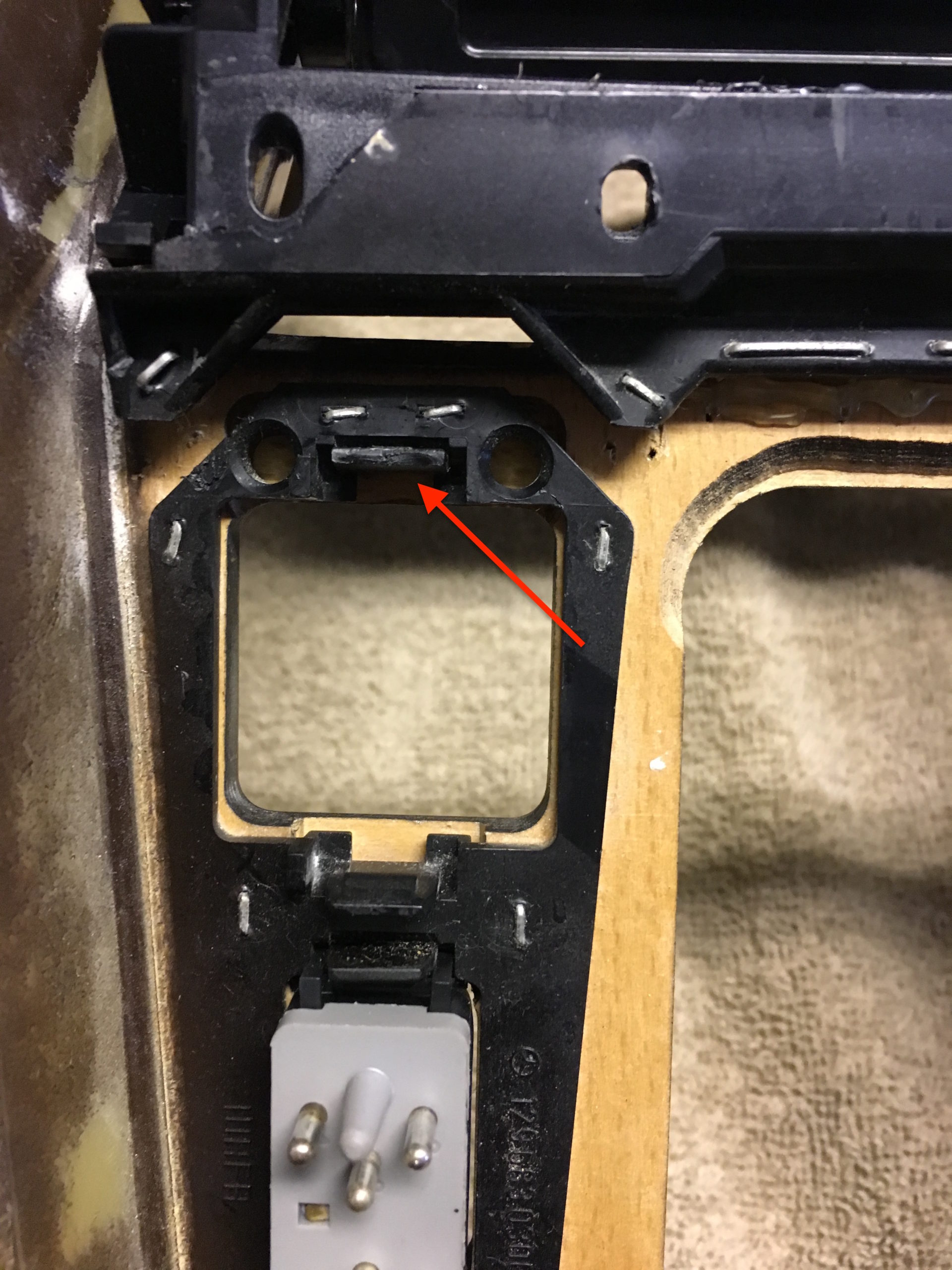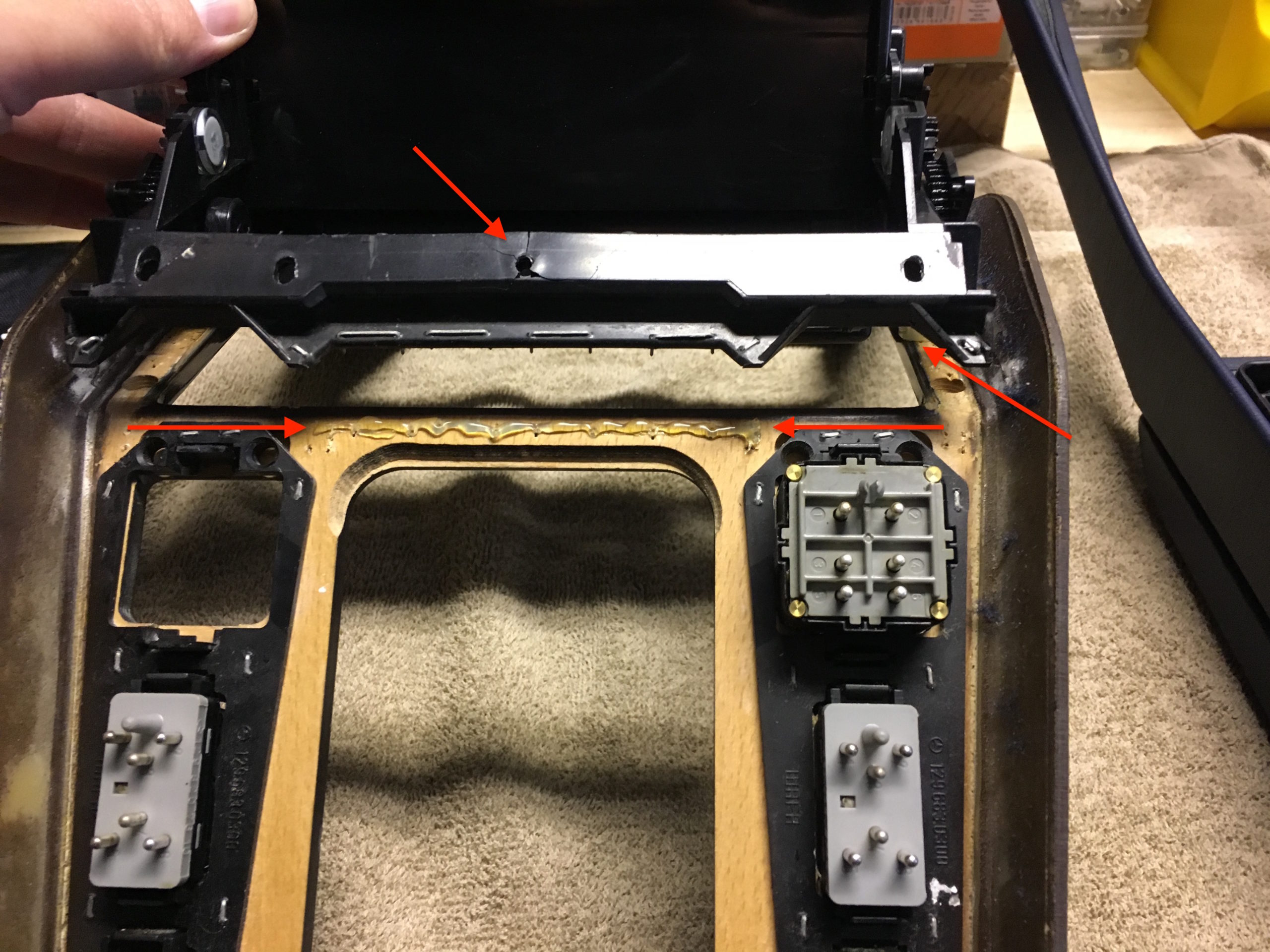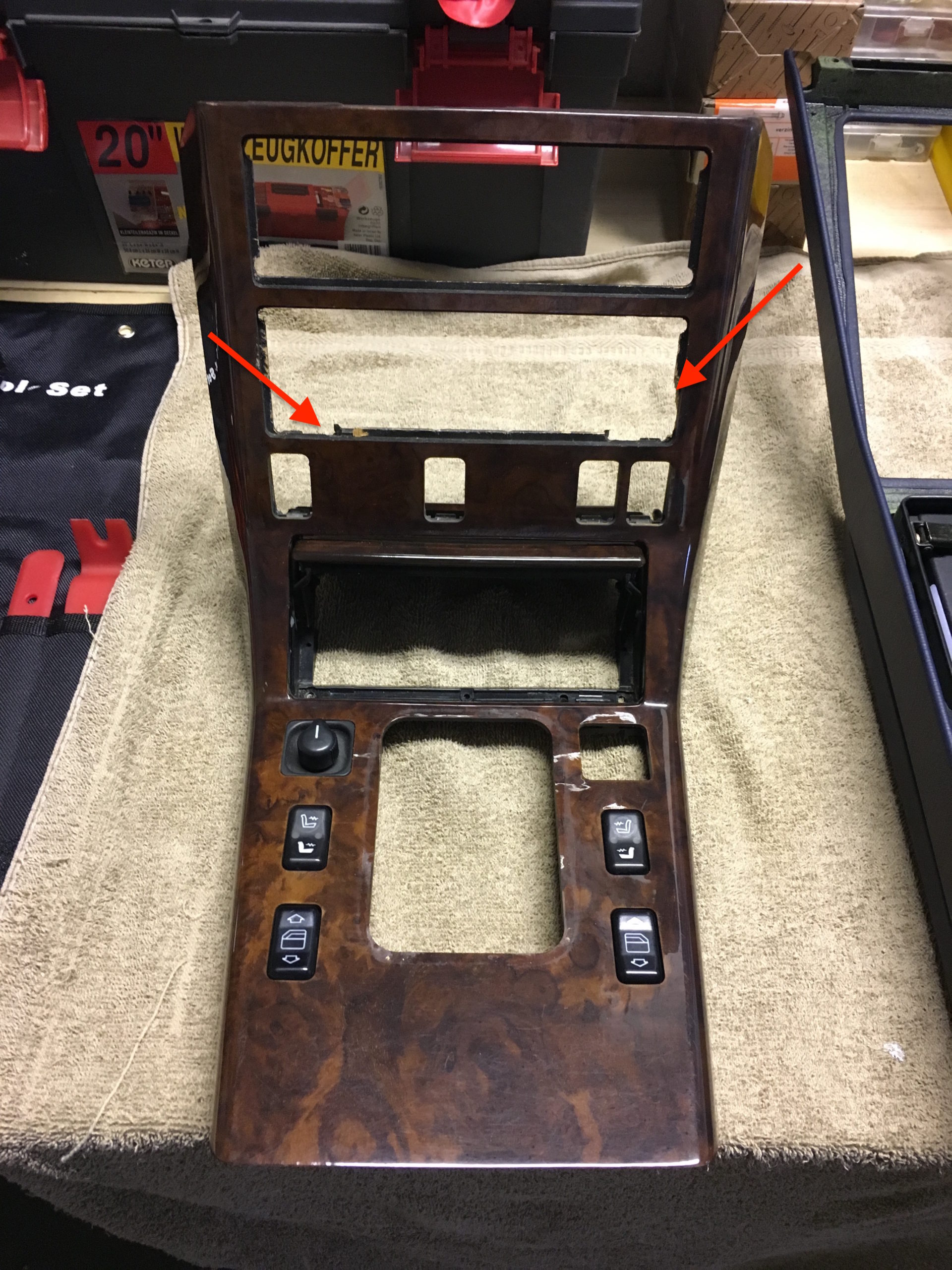 Mittelkonsole und der Heisskleber Verdeckschalter HalterungWenigstens der Schalter ist noch heil.